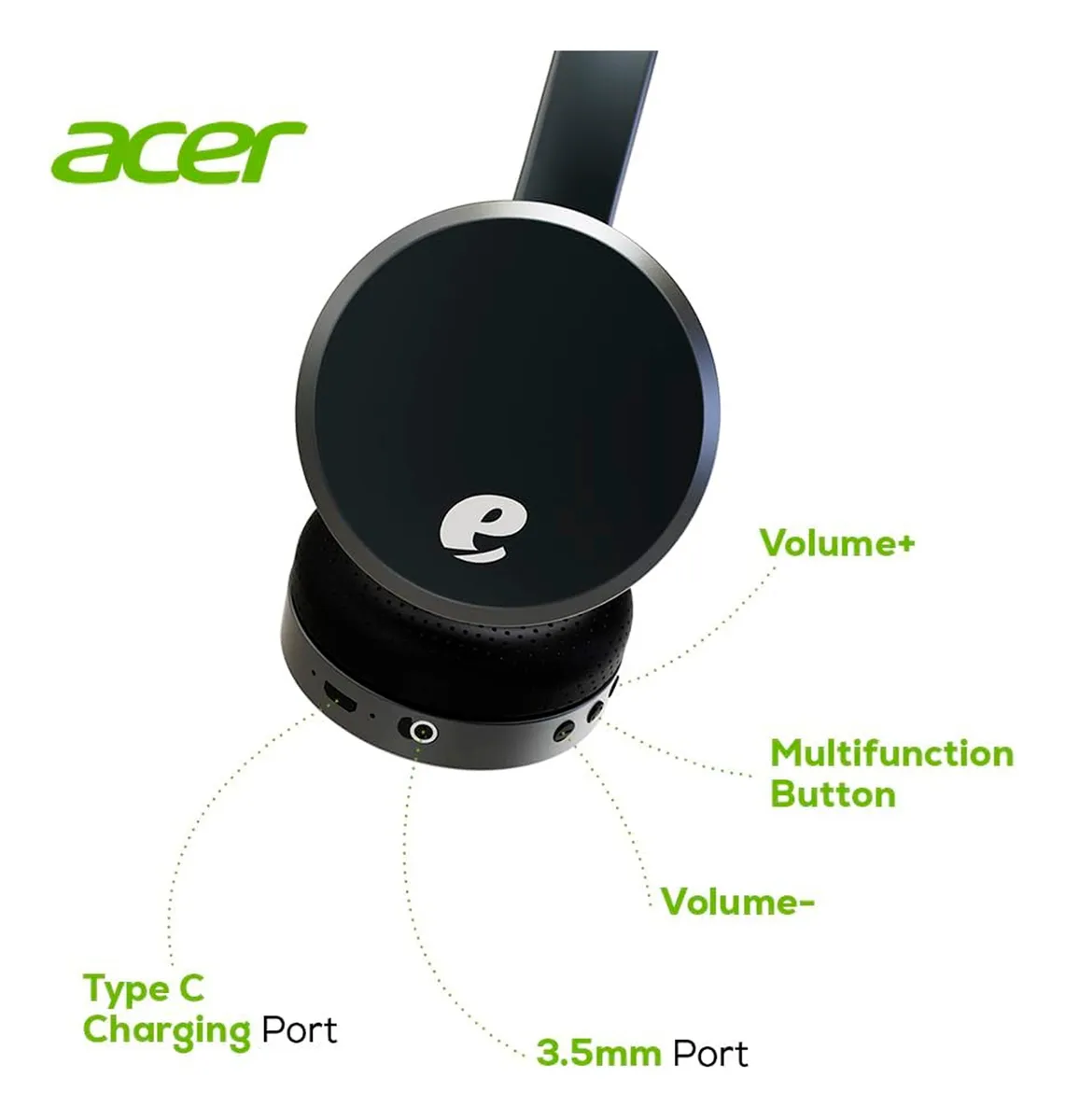 These Acer wireless headphones feature a lightweight and comfortable design, offering up to 28 hours of playtime. They can be used wired or wirelessly via Bluetooth, support HD noise reduction technology, and enable hands-free calling. They have an adjustable headband and comfortable rotating earcups.They also feature 40mm drivers for immersive and clear sound. Charging is supported via USB Type-c