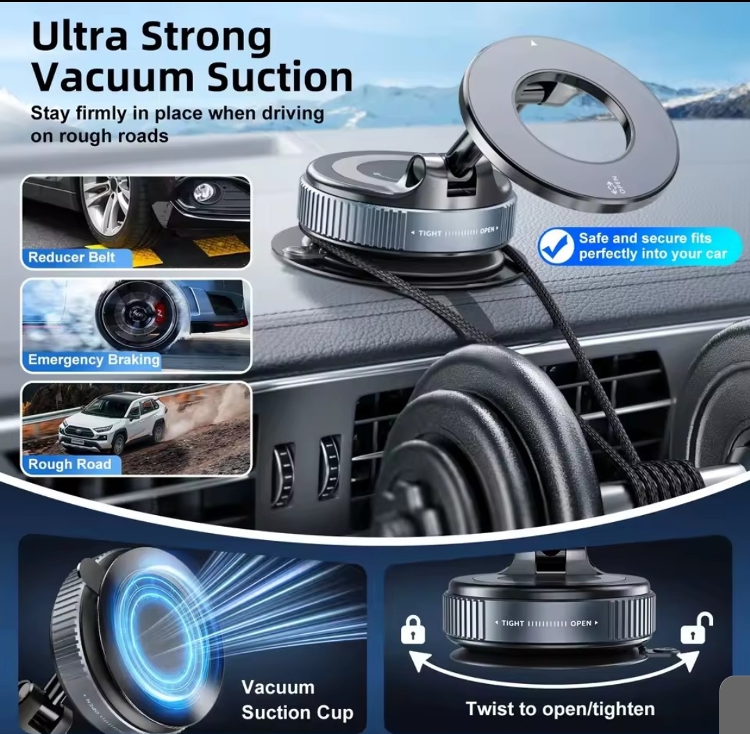 Car Phone Magnetic Stand Mechanical Vacuum Suction Cup Rotate 360° Magnetic Adsorption Bracket